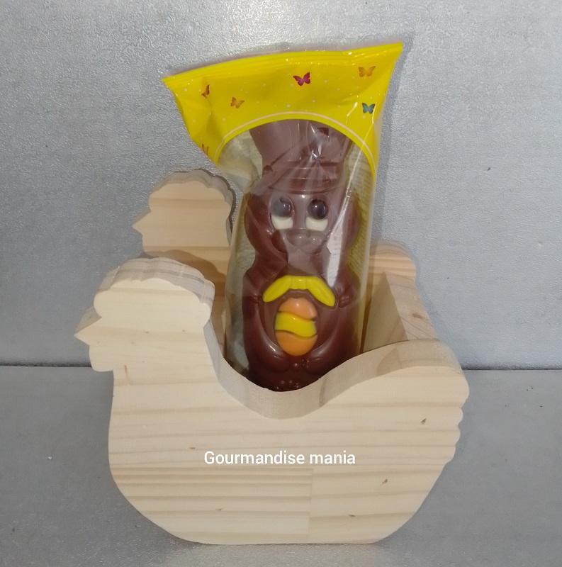 Venez découvrir notre lapin Alvin est sa jolie poule en bois.
