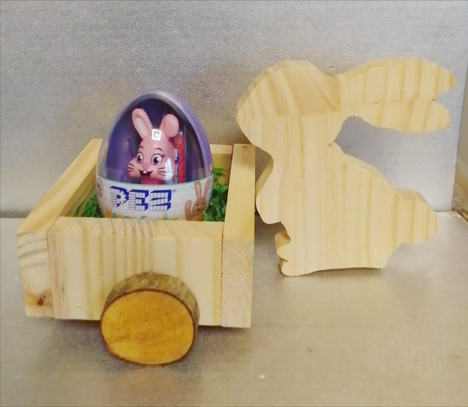 Venez découvrir notre jolie brouette lapin de Pâques, avec oeufs distributeur pez